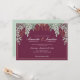 Diese kranberrische Hochzeitseinladung zeichnet sich durch ein horizontales Design aus und wird durch eine Grafik von Salbei-Grün-Blätter auf der Oberseite hervorgehoben. Das Design bietet Akzente der Farbe Gold. Diese Einladung ist ideal für einen Sommer oder eine Hochzeit im Herbst.