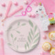 Grüne Blätter auf einfacher Seite Datum Rosa Hochz Pappteller