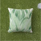 Grüne Blätter auf weißem Kissen mit botanischen Gartenmöbeln.