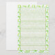 Ein helles und frisch ausgekleidetes Schreibpapier mit Aquarellfarben-Blätter in verschiedenen Federgrün-Tönen.