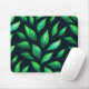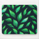 Grüne Blätter Mousepad mit Mischmedienfarbe und digitaler Malerei abstrakter Blätter mit hellgrünen Adern über dunkelgrün, fast schwarz, anpassbar Hintergrund.