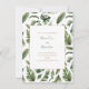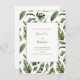 Grüne Blätter, Dschungelstil, Waldhochzeit mit stilvollem Kalligraphiestil. Elegantes Skript für die Namen und fett Klartext für die Hochzeitsdetails.