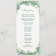 Diese Hochzeitsfeiern sind mit grünen Blätter und Blattwerk gestaltet. Die Vorderseite der Karte hat die Zeremonie, und auf der Rückseite der Karte wird das Brautparty angezeigt. Diese Hochzeitsprogramme sind Teil einer Sammlung, die eine vollständige Palette von passenden Hochzeitswaren und Brautprodukten umfasst. Bitte besuchen Sie die Sammlungs-Seiten in unserem Geschäft, um das komplette Sortiment zu sehen.