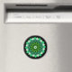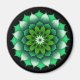 Dieses Design zeichnet sich durch eine mandalähnliche oder kaleidoskopartige konzentrische Anordnung aus, die wie grüne Blätter auf schwarzem Hintergrund aussieht.