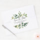 Grüne Blätter mit Wasserfarbe speichern das Datum Runder Aufkleber