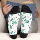 Weiße Urlaubsocken mit einem niedlichen festlichen Muster von wasserfarbenen grünen Blätter und roten Beeren bedruckt. Sie können sie mit Ihrem eigenen Monogramm anpassen. Perfektes Weihnachtsgeschenk für Ihre Freunde und Familie. Eine gute Wahl für einen Winter, Wald und rustikalen Stil begeistert.