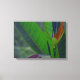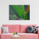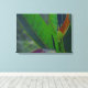 Mit dem Look eines Retro-tropischen Stoffdesigns ist das Originalfoto von MaeFlowers auf dieser ummantelten Canvas Print eine Nahe grüner Blätter mit ihrem linearen Detail und anmutigen Kurven. Einige der Blätter fangen das Licht auf eine Weise, die Rost und lila macht. Der Hintergrund des Fotos ist eine Unschärfe an weichen Grüntönen.