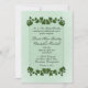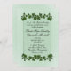 Eine schöne grüne Einladung mit grünen Blätter. Setzen Sie die Vornamen des Paares auf einer Seite mit allen Informationen und Begrüßungen der Mutter und des Vaters der Braut. Bitte dreimal Karo deinen ganzen Text.