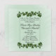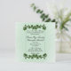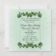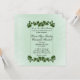 Eine schöne grüne Einladung mit grünen Blätter. Setzen Sie die Vornamen des Paares auf einer Seite mit allen Informationen und Begrüßungen der Mutter und des Vaters der Braut. Bitte dreimal Karo deinen ganzen Text.