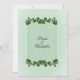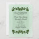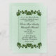 Eine schöne grüne Einladung mit grünen Blätter. Setzen Sie die Vornamen des Paares auf einer Seite mit allen Informationen und Begrüßungen der Mutter und des Vaters der Braut. Bitte dreimal Karo deinen ganzen Text.