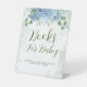 Grüne blaue Hydrangea Bücher für Baby Dusche Pedestal Schild. Matching-Elemente verfügbar.