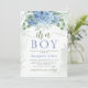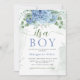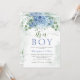 Grüne blaue Hydrangea seine a Boy Baby Dusche Einladung. Matching-Elemente verfügbar.