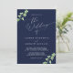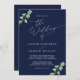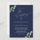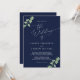 Schöne marineblaue Hochzeitseinladung mit wunderschön bemalten Aquarellen. Vollständig anpassbar mit Namen, Daten, Ort, etc...
