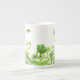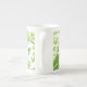 Diese schöne Knochen-China-Tasse wird mit einem hübschen grünen Blumendruck gezeigt. Passen Sie diese Tasse an oder kaufen Sie, wie es ist.