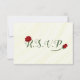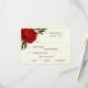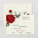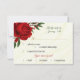 Schöne, individuell anpassbare botanische Rsvp-Karte mit der Speisekarte schöne rote Blume und grüne Blätter auf einem eleganten Hintergrund aus hellem Gold