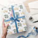 Dieses elegante und skurrile Verpackungspapier ist vielseitig einsetzbar und kann für Geschenke oder Kunst- und Kunsthandwerksprojekte verwendet werden. Es ist perfekt zum Geburtstag. Das Design umfasst Aquarellgrün-Blume, Schmetterlinge und Goldkronen.