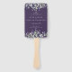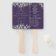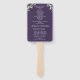 Ein eleganter Hochzeitsfächer mit hübscher lila Blumen grün und Ihren Hochzeitsdetails in klassischem elegantem Text auf lila Hintergrund. Entworfen von Thisisnotme©