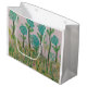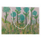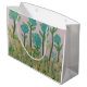 Grüne Blume, handgemalt mit langen Stilen und Blätter, in einem Bereich neben anderen kleinen Wildblumen, als gemischtes Kunstwerk geschaffen.