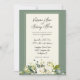 Das ist eine wunderschöne, einfache, blumengeschmückte Hochzeitseinladung auf einem Olivenhain mit weißen Blume in Aquarelltönen, umgeben von Grüntönen. Absolut wunderschön. Ideal für eine Herbst- und Winterhochzeit. Kann leicht mit Orangen, Bordeaux und anderen tiefen Farben gemischt werden, um Ihr Thema zu vervollständigen.
