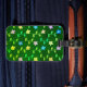 Ein leicht zu erkennendes Blumenmuster grünes Gepäckanhänger. Es gibt niedliche farbenfrohe Blume vor einem grünen grasähnlichen Hintergrund.