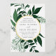 Unsere Hochzeitseinladung im Wilden Wald umgibt Ihre Hochzeitstage-Details mit einem runden Rahmen von lebendigem Aquarell in winterlichen Schattierungen von Waldgrün. Eine moderne und Bio Wahl für Winter- oder Frühjahrshochzeiten mit kunstvoll bemalten botanischen Elementen.