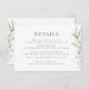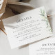 Boho Sage Greenery Botanical Olive Elegant Simple Wedding Details Enclosure Card. Bohemisch gestaltete botanische minimalistische Details Card mit eleganten und schlichten boho -grünen Botanicals in handgedruckter Aquarell. Das grüne Aquarell ist für Hochzeiten und grüne Hochzeiten wunderschön. Detailkarte für Frühjahr, Sommer, Herbst und Winterhochzeiten.