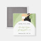 Trendy Save the Date Magnete, mit einer Braut und Bräutigam auf einem grünen margarita wirl Hintergrund Fügen Sie Ihre Informationen in unserer einfach zu bedienenden Vorlage, oder klicken Sie auf "Anpassen", um Text zu bearbeiten. Bild © JD Digi Designs