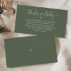 Diese minimalistische Baby Shower Enclosure Card aus unserer Minimalistischen Color - Baby Shower Kollektion zeichnet sich durch elegante, moderne Schrift mit minimalistischem Layout aus. Um vorzeitige Änderungen vorzunehmen, wählen Sie Personalisieren -> Bearbeiten mit dem Entwurfstool.