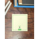 Ein niedliches, hellgelbes Notizblock mit einem Stapel von 3 grünen Büchern mit einer kleinen Schlangen-Pflanze oben. Der Text lautet "Eine Notiz von" (Sie können sie so verlassen wie sie ist oder ändern) und Sie können einen Namen hinzufügen. Es wäre ein schönes kleines Geschenk für Lehrer und Bibliothekare. © ArianeC Illustrations-Alle Rechte vorbehalten