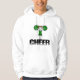 Cheerleading T - Shirts, Tassen, Hoodies, Karten, Taschentaschen, Magneten, zujubelnde Aufkleber, Schlüsselanhänger und mehr mit einer Cheerleader in einer grünen Uniform und grünen in pom poms.