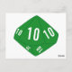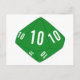 Postkarte der D10-Tischnummer - Tabelle 10 Postkarte der Tischnummer D10, beidseitig bedruckt, mit einer D10-Würfel auf zehn Seiten grün. Diese komische und lustige Tischnummer-Karte ist zweiseitig, also vergewissern Sie sich, dass Sie die Zahlen auf beiden Seiten ändern. Ändern Sie einfach die Zahlen für die entsprechende Tischnummer(en). Klicken Sie auf "Anpassen", um weitere Personalisierungsoptionen zu erhalten.