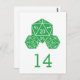 Haben Sie sich bei einem Treffen mit Ihrem zukünftigen Ehegatten und allem, was zu Ihrer Verlobung führte, wie ein Zwanzigjähriger gefühlt? Wenn ja, ist diese geniale D20 Dice Wedding Tischnummer Postcard perfekt für Sie! Die elegante, aber feine Tischkarte in Grün ist leicht mit einer größeren D20 die und zwei kleineren Würfeln versehen, die sie flankiert. Klicken Sie auf "Anpassen", um weitere Personalisierungsoptionen zu erhalten.