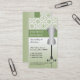 Graue Kleiderformularständer nach einer weichen grünen reflektierenden Oberfläche auf dieser Geschäftskarte des Damastes des weisen Grüns gemusterten. Ein persönlicher oder Handelsname steht heraus im grünen Band mit weiteren Kontaktinformationen unten. Groß für Modedesigner, Damenschneiderinnen, Schneider oder jedermann, der in das Modefeld einbricht. Verfügbar mit zusammenpassenden Produkten.