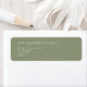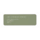Green Simple Sage White Modern Return Address Label mit beeindruckendem, modernem Textetikett inklusive Familienname & Rücksendeadresse in weißem Text für eine wunderbare, einfache, moderne, saubere thematische Hochzeit.