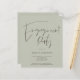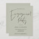 Eine günstige BUDGET-Alternative für eine kleinere Größe von 4,5 x 5,6 Zoll, die ein Gewicht von 110 lbs hat, die ähnlich dick ist wie eine Postkarte (sie ist jedoch nicht als Postkarte geeignet). BITTE BEACHTEN SIE, DASS ES EINE Einladung pro Blatt gibt. Handgeschriebenes Script Engagement Party Sage Green Invitation Zeitgenössisches minimalistisches Design mit dem Hauptheader Engagement Party in einem dunkelbraunen Set Stilskript und die Erholung des Textes können Sie leicht personalisieren. Sie können auch die Farbe und den Schriftart des bearbeitbaren Textes ändern, wenn Sie dies wünschen, indem Sie die Option Weitere Einstellungen anklicken.