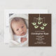 Süße Elefanten Baby-Geburtsmitteilung kennzeichnet ein entzückendes grünes Elefantbabymobile auf einem modischen braunen Hintergrund. Fertigen Sie mit dem Bild Ihres neugeborenen Babys besonders an und Geburtsinformationen und -c$sie sind alles Set, zum zu gehen. Zusammenpassende Einzelteile verfügbar in unserem Geschäft. ©Cocoa Studio