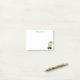 Niedlicher grüner Elf mit Goldmünzen und glücklichem Kleeblatt auf weißen Post-it-Notes. Text kann personalisiert sein.