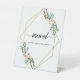 Modernes und elegantes Design gedruckt Grüne Eukalyptus Blätter Gold Glitzer Geometric Frame Calligraphy Reserved Pedestal Sign, die mit Ihrem Text angepasst werden können. Karo im Grafikdesign-Store für andere Produkte, die diesem Design entsprechen!