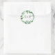 Dieser runde Aufkleber enthält handgeschriebene Stilinitialen, umgeben von grünem Eukalyptus-Blattwerk, auf weißem Hintergrund. Dies ist Teil einer passenden Hochzeitssuite. Sie können die Initialen im Menü "Anpassen" ändern.