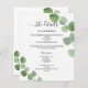 Eine moderne, elegante Hochzeitsdetails/Programm/Zeitleiste. Weiße, mit Eukalyptusgrün dekorierte Untergründe, mit Sprigs. Personalisieren und fügen Sie Ihre Namen und Hochzeitsdetails. Schwarze Buchstaben. Text auf beiden Seiten. 1 Blatt = 1 Programm, mit der Kante bis Kante bedruckt.