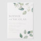 Mit dieser maßgeschneiderten Grün-Hochzeitseinladung laden wir Sie zu einem besonderen Tag ein. Es zeichnet sich durch Aquarelleukalyptus-Blätter und klassische Typografie aus. Personalisieren Sie diese, indem Sie Ihre Veranstaltungsdetails hinzufügen. Diese Eukalyptus Hochzeit Vellum Einladung ist perfekt für Frühjahr und Winter Hochzeiten. Matching-Elemente sind verfügbar.