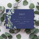 Diese elegante Hochzeitskarte mit einer wunderschönen Aquarellblüte mit Eukalyptusblättergrün auf marineblau-blauem Hintergrund. Die Karte kann personalisiert sein, um Ihre eigenen Angaben zu machen. Ob Sie eine rustikale Outdoor-Hochzeit im Herbst planen oder eine formelle Affäre planen, diese RSVP-Karte ist die perfekte Ergänzung zu Ihrem Hochzeitsgeschenk.