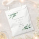 In der minimalistisch-trendigen Gastgeschenk Hochzeit-Tasche mit eleganter Grünanlage Eukalyptus Watercolor, in Grün und Weiß gehalten. Die zarte schwarze Kalligraphie fügt dieser Fvor-Tasche eine Touch der Eleganz hinzu und ist somit die ideale Wahl für eine moderne Hochzeitsfeier.