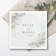 Elegant rustikale Hochzeitsnapkins mit romantischem Eukalyptus in zartem Schatten von schlauer grün und schlicht und stilvoll dunkelgrüne Typografie-Schrift auf einem Aquarellhintergrund mit rustikalen Salbei-grünen Eukalyptus-Blätter. Passen Sie Ihre individuellen Daten an.