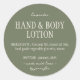 Grüne Flasche Hand Lotion Zutaten Runder Aufkleber