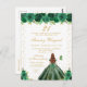 Diese elegante und glamouröse Geburtstagsfeier lädt zu einer schönen Prinzessin mit braunem rotem Haar und feiner Haut in einem grünen Ballkleid ein. Der Text kombiniert handgeschriebene Skripte mit modernen serifenlosen Schriftart für ein elegantes und raffiniertes Aussehen. Die Blumenarrangements, Schmetterlinge und Goldkonfetti bilden die perfekte Mischung aus rustikal und schick. Grafiken von www.etsy.com/uk/shop/SunflowerDayLove