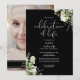 Eine elegante botanische personalisierte Wasserfarbe grüne Blumenfeier des Lebens Foto Erinnerungseinladung. Entworfen von Thisisnotme©