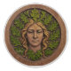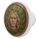 Eine grüne Frau, die in Holz gemeißelt wurde, mit Farbe, die auf die Eichenhaare und Blätter aufgetragen wurde. Auch bekannt als Laub-Kopf, der Grüne Mann/Wilder Mann, ist ein Motiv in Architektur und Kunst, ein Gesicht, das aus Blattwerk besteht oder vollständig umgeben ist und sich meist aus der Mitte des Gesichts ausbreitet. Abgesehen von einer rein dekorativen Funktion wird der Grüne Mensch als Symbol der Wiedergeburt interpretiert und repräsentiert den Zyklus des neuen Wachstums, der jeden Frühling auftritt. Der Grüne Mensch, der in vielen Kulturen aus vielen Altersgruppen der Welt gefunden wurde, ist oft mit natürlichen Pflanzenarten verwandt. Die weibliche Entsprechung des grünen Mannes wird oft als die grüne Frau oder die Sheela-Na-Gig bezeichnet. Diese Figuren, oft mit einer grünen Krone oder üppigen Haaren dargestellt, symbolisieren ihre Verbindung zur natürlichen Welt, sind mit Fruchtbarkeit, Natur und der Wildnis verbunden. In einigen Kontexten können die "Wilde Frau" oder das "Glaistig" (eine Art Seemeißchen in der schottischen Folklore) auch als weibliche Entsprechungen des grünen Mannes betrachtet werden, die verschiedene Aspekte der Natur und des Powers darstellen.