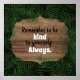 Das Design enthält ein Holzschild mit dem Text "Denken Sie daran, freundlich zu sich selbst zu sein. Immer." auf grüner Palme verlasse Hintergrund. Der Text ist vollständig anpassbar.