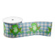 Niedliche grüne Frösche auf einem Aqua-Blau-und Weiß-Gingham-Hintergrund.